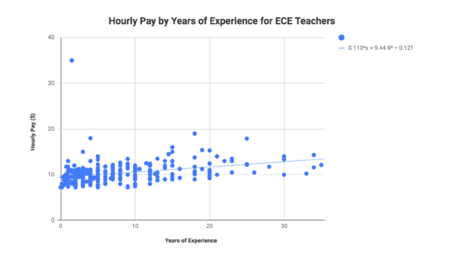 While interning at Smart Beginnings NRV in southwest VA, I had the opportunity to take an existing dataset of survey responses from the spring of 2019 and perform the first regional analysis of the early childhood education workforce. This analysis included issues of education, compensation (hourly rates, as well as pay increases by years of experience in the field), specialization and training in the early childhood field, professional development opportunities, poverty rates of teachers, and other challenges faced by those employed in the field. Conducting the necessary background research, planning and executing the analysis, and communicating the results proved a rewarding and eye-opening experience.
